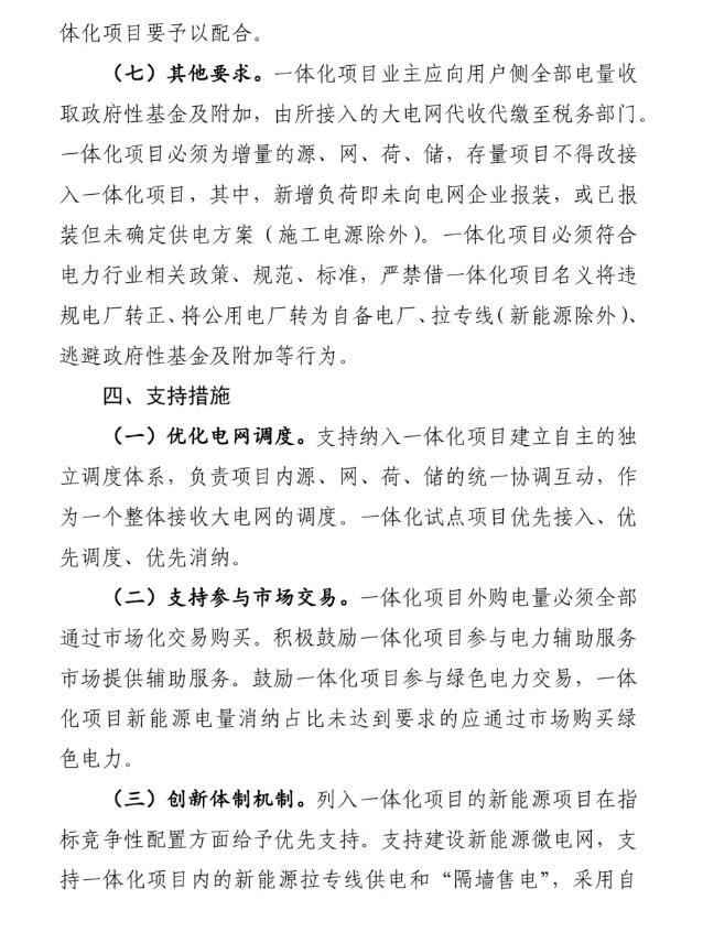 一體化項目外購電量必須全部通過市場化交易購買。積極鼓勵一體化項目參與電力輔助服務市場提供輔助服務。鼓勵一體化項目參與綠色電力交易,一體化項目新能源電量消納占比未達到要求的應通過市場購買綠色電力。