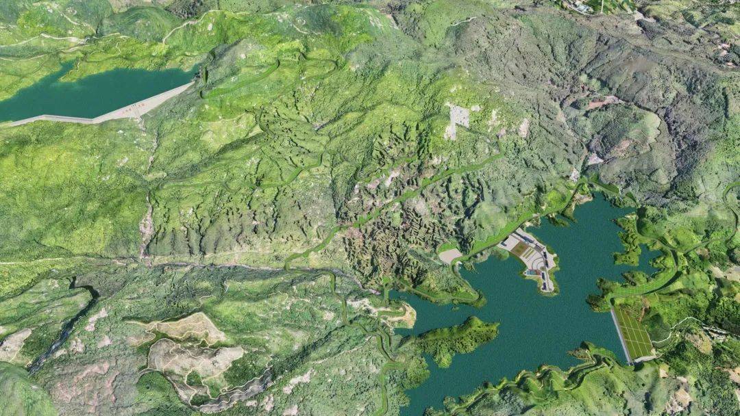 下水庫(kù)工程是抽水蓄能電站的主體工程之一,位于險(xiǎn)橋和烏珩兩個(gè)山間盆地,正常蓄水位133.5m,死水位108.0m,設(shè)計(jì)庫(kù)容2084.8萬(wàn)m³,調(diào)節(jié)庫(kù)容1824.4萬(wàn)m³,集雨面積達(dá)14.64km²,天然成庫(kù)條件好。下水庫(kù)建設(shè)內(nèi)容主要包括下水庫(kù)大壩、溢洪道、導(dǎo)流洞及放水底孔、庫(kù)周防滲、庫(kù)岸防護(hù)和環(huán)庫(kù)道路,建成后為電站提供龐大的蓄水容器,并環(huán)抱電站永久業(yè)主營(yíng)地,將形成一波萬(wàn)碧、山水相映的秀麗景觀。