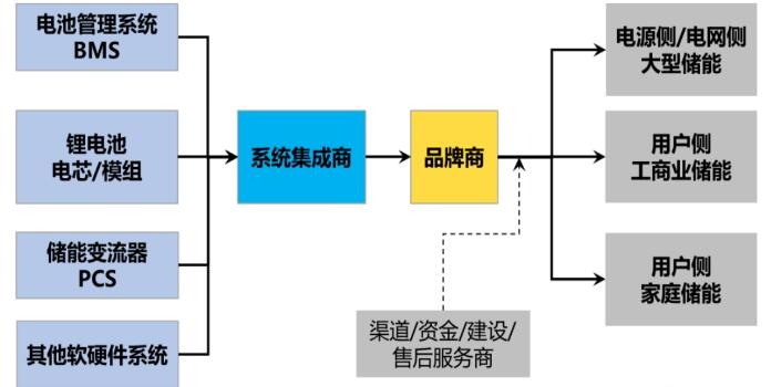 一是獨立的品牌商,如上所述,主要負(fù)責(zé)產(chǎn)品、供應(yīng)鏈、品牌和渠道等,通過向系統(tǒng)集成商采購或者尋求代工的方式來實現(xiàn)產(chǎn)品制造。這類主要是擁有先天品牌和渠道優(yōu)勢而又不具備鋰電產(chǎn)業(yè)制造能力和資源的光伏系品牌商。