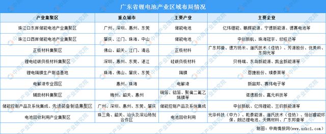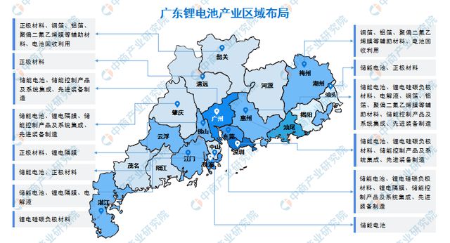 近年,廣東省不斷優(yōu)化鋰電池產(chǎn)業(yè)區(qū)域布局,重點建設珠江口東岸儲能電池產(chǎn)業(yè)集聚區(qū),珠江口西岸儲能電池產(chǎn)業(yè)集聚區(qū),正極材料集聚區(qū),鋰電硅碳負極材料集聚區(qū),鋰電隔膜生產(chǎn)制造基地,電解液專業(yè)園區(qū),銅箔、鋁箔、聚偏二氟乙烯膜等輔助材料集聚區(qū),儲能控制產(chǎn)品及系統(tǒng)集成、先進裝備制造集聚區(qū),電池回收利用產(chǎn)業(yè)集聚區(qū)等。