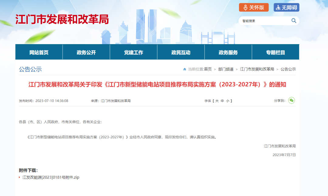 江門發(fā)展改革局印發(fā)《江門市新型儲(chǔ)能電站項(xiàng)目推薦布局實(shí)施方案(2023-2027 年)》(簡稱:《方案》)。