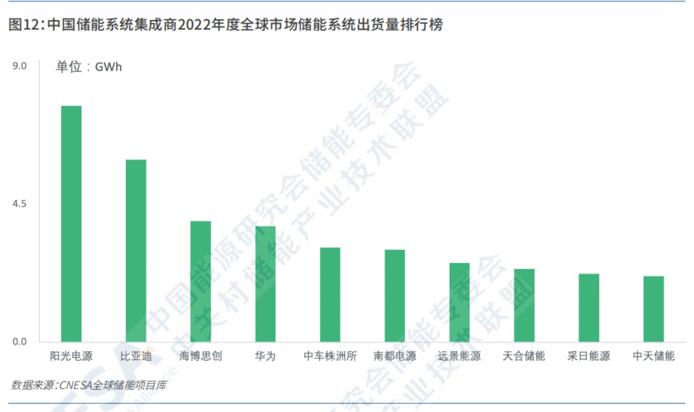 比亞迪也占據(jù)2022年度全球市場儲能系統(tǒng)出貨量榜單的第2名,華為第4。