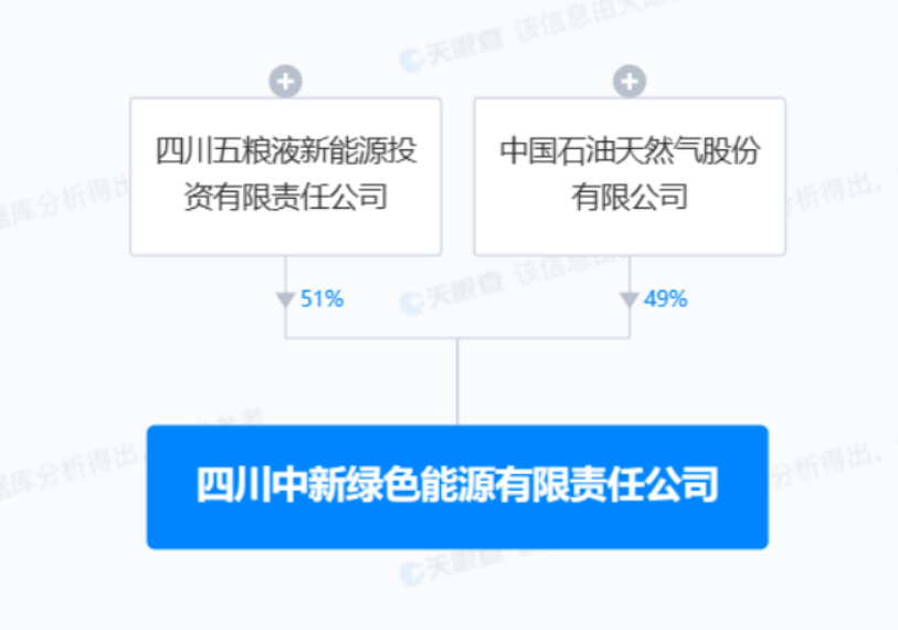 根據天眼查信息顯示,中新綠能由由四川五糧液新能源投資有限責任公司持股51%、中國石油天然氣股份有限公司持股49%。其董事長為鐘道遠,分別擔任著和光同程光伏科技有限公司、四川五糧液新能源投資有限責任公司等多家企業(yè)高管。