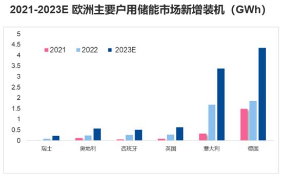 奧地利H1新增裝機(jī)將略低于英國(guó),但超過西班牙達(dá)到0.3GWh;與此同時(shí)瑞士,荷比盧地區(qū)預(yù)計(jì)將增加0.32GWh; 整體歐洲戶用市場(chǎng)新增裝機(jī)規(guī)模在2023年將達(dá)到9.57GWh。