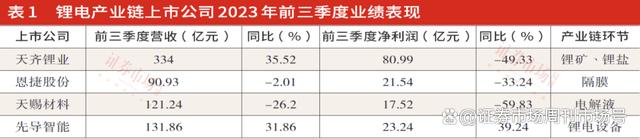 同樣,產(chǎn)業(yè)鏈上下游其他公司業(yè)績乏善可陳:鋰礦龍頭企業(yè)天齊鋰業(yè)前三季度歸母凈利潤同比跌幅近50%,隔膜龍頭企業(yè)恩捷股份歸母凈利潤同比跌幅近三分之一,電解液龍頭企業(yè)天賜材料歸母凈利潤同比跌幅近60%。