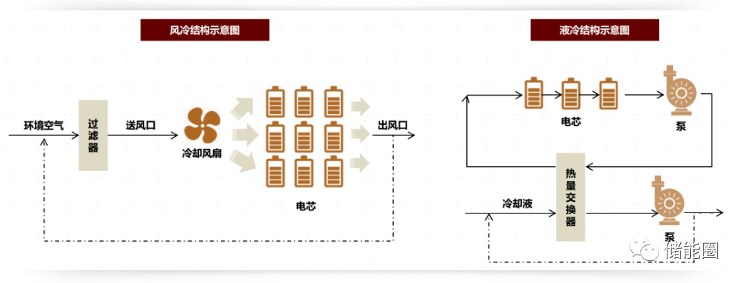 風(fēng)冷與液冷結(jié)構(gòu)示意圖