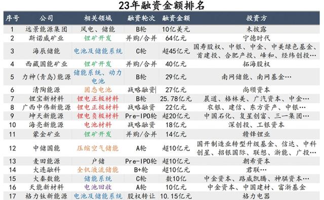 2023年,部分企業(yè)獲取高額融資,遠景能源、海辰儲能融資領(lǐng)銜。