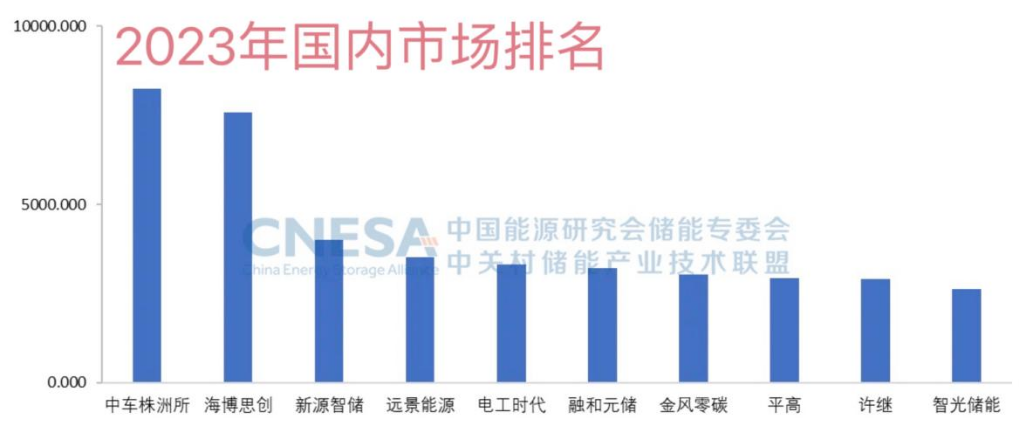 3月13日,CNESA發(fā)布了2023年儲(chǔ)能系統(tǒng)集成商出貨量榜單,中車株洲所超越海博思創(chuàng),登頂中國儲(chǔ)能系統(tǒng)集成商榜首。