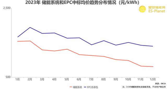 ※ 圖表:2023年儲能系統(tǒng)及EPC中標(biāo)均價