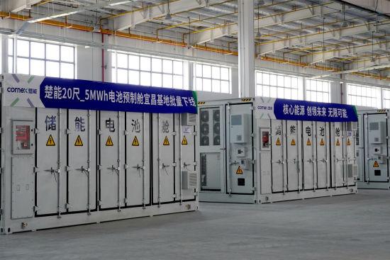 自去年8月投產(chǎn)以來(lái),宜昌楚能已生產(chǎn)近4GWh電芯產(chǎn)品,一直以單電芯產(chǎn)品形式進(jìn)行交付。此次5MWh電池集裝箱下線交付,標(biāo)志著宜昌楚能產(chǎn)品交付能力邁向新臺(tái)階。目前,一個(gè)集裝箱車(chē)間一天能組建2至3個(gè)電池集裝箱產(chǎn)品。