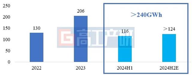 根據(jù)高工產(chǎn)研儲(chǔ)能研究所(GGII)調(diào)研統(tǒng)計(jì),2024年上半年中國儲(chǔ)能鋰電池出貨量116GWh,相較2023年上半年87GWh,增長41%。其中一季度出貨量40GWh,二季度出貨量76GWh。GGII預(yù)計(jì)2024年全年儲(chǔ)能鋰電池出貨量超240GWh,其中電力儲(chǔ)能將成為2024年增長最主要驅(qū)動(dòng)力;戶用/通信/便攜式儲(chǔ)能市場需求將有所放緩,全年出貨低于預(yù)期。
