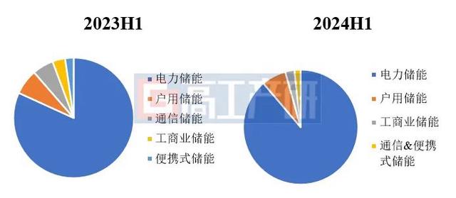2023H1-2024H1中國儲(chǔ)能鋰電池出貨量(按細(xì)分領(lǐng)域,GWh)