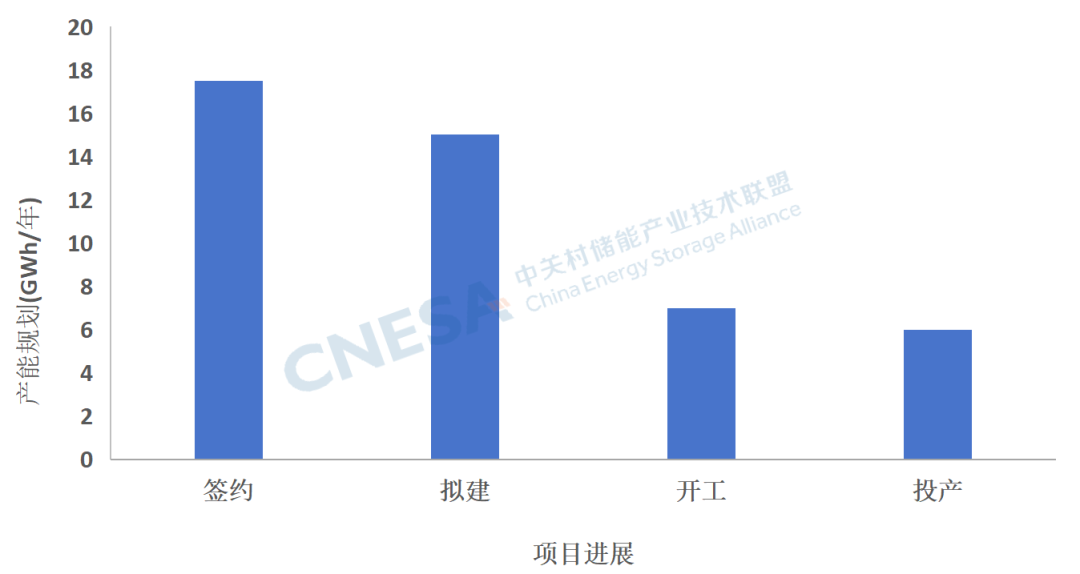 6月份新增產(chǎn)能(含簽約、擬建、開工和投產(chǎn))45.5GWh,投資額超過250億元人民幣。