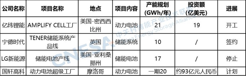 此外,本月,億緯鋰能、寧德時(shí)代、國軒高科等國內(nèi)頭部電池企業(yè)在海外的產(chǎn)能布局如火如荼進(jìn)行中,相繼宣布了其海外電池和儲能系統(tǒng)的規(guī)劃情況。