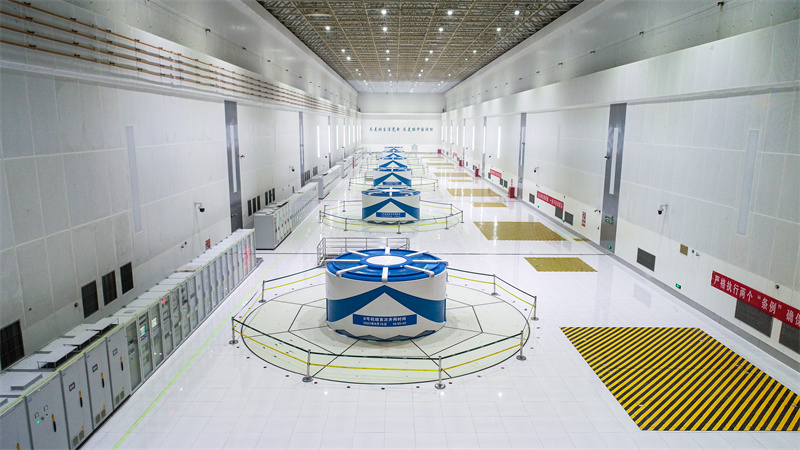 走進(jìn)文登抽水蓄能電站地下廠房,潔白的大廳內(nèi)6臺(tái)機(jī)組一字排開(kāi),機(jī)罩側(cè)面描繪著藍(lán)色波濤圖形。2023年9月19日,國(guó)網(wǎng)新源山東文登抽水蓄能電站最后一臺(tái)機(jī)組——6號(hào)機(jī)組正式投入商業(yè)運(yùn)營(yíng),標(biāo)志著山東省內(nèi)裝機(jī)規(guī)模最大、膠東地區(qū)首座抽水蓄能電站全面投產(chǎn)發(fā)電。
