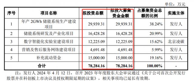 其中29939.31萬元用于年產(chǎn)2GWh儲能系統(tǒng)生產(chǎn)建設(shè)項目,16428.28萬元用于儲能系統(tǒng)研發(fā)及產(chǎn)業(yè)化項目,12225.09萬元用于數(shù)字智能化實驗室建設(shè)項目,4691.48萬元用于營銷及售后服務(wù)網(wǎng)絡(luò)建設(shè)項目,15000萬元用于補(bǔ)充流動資金。