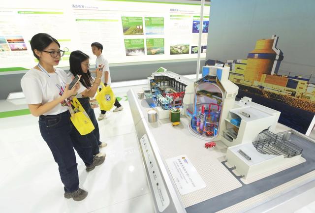 10月20日,第24屆東亞及西太平洋電力工業(yè)協(xié)會大會上,參觀者在國家電力投資集團(tuán)有限公司展位參觀拍攝“國和一號”核電機(jī)組模型。新華社記者林善傳攝