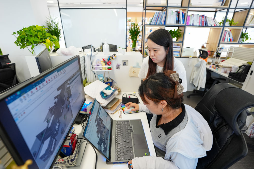 2024年8月26日,中國電子院工作人員在討論某先進(jìn)半導(dǎo)體項目物流仿真方案