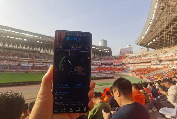 圖:濟(jì)南奧體中心5G網(wǎng)速測試