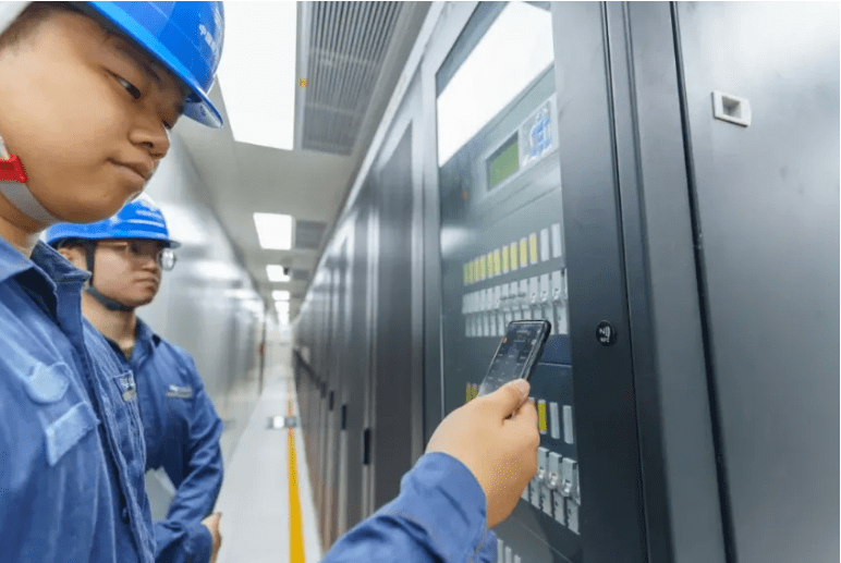 深圳供電局基于開源鴻蒙自主研制通信機房數(shù)智運維系統(tǒng),提高了機房智能管理水平。圖為供電人員使用鴻蒙手機“碰一碰”機房設(shè)備,就能掌握該設(shè)備實時數(shù)據(jù)。(黃海鵬攝)