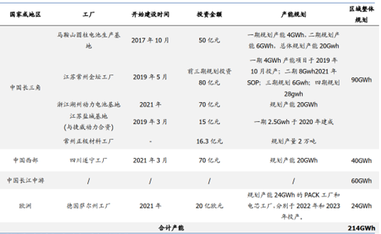 圖:蜂巢能源工廠規(guī)劃。資料來(lái)源:高工鋰電,國(guó)盛證券研究所