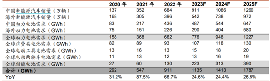 圖:全球鋰電池(含儲(chǔ)能)需求估計(jì)。資料來(lái)源:GGII、EVTank、招商證券