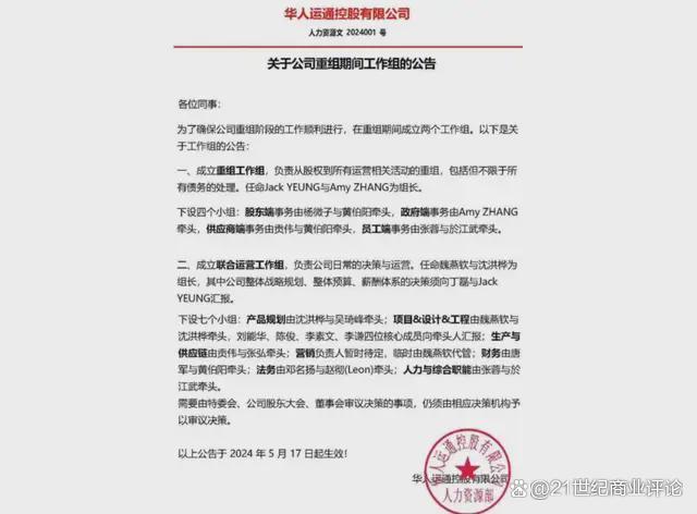 其內(nèi)部公告顯示,重組組長之一為Jack Yeung,即投資方iAuto的聯(lián)合創(chuàng)始人、CEO。