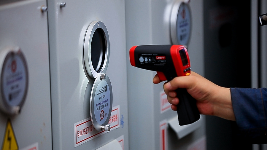 在昆明東風(fēng)廣場,工作人員正對(duì)變壓器內(nèi)的設(shè)備進(jìn)行檢修(6月7日攝)。新華網(wǎng) 徐華陵 攝