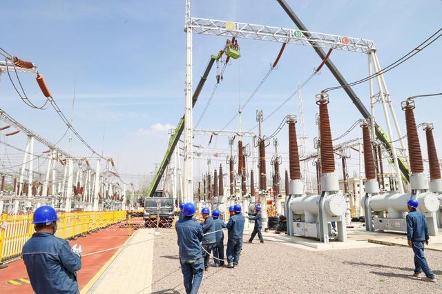 4月9日,在330千伏眉峴變電站,作業(yè)人員對站內(nèi)開關(guān)進(jìn)行更換,這是國網(wǎng)平?jīng)龉╇姽臼状巫灾鲗?shí)施變電站330千伏設(shè)備改造工程,標(biāo)志著全業(yè)務(wù)核心班組建設(shè)水平邁上新臺(tái)階、實(shí)現(xiàn)新突破。