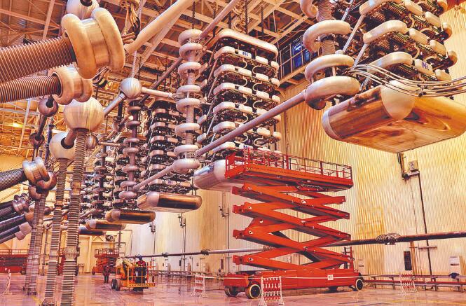 黨員在檢修±1100千伏昌吉換流站極I低端閥廳設(shè)備。郭健 攝