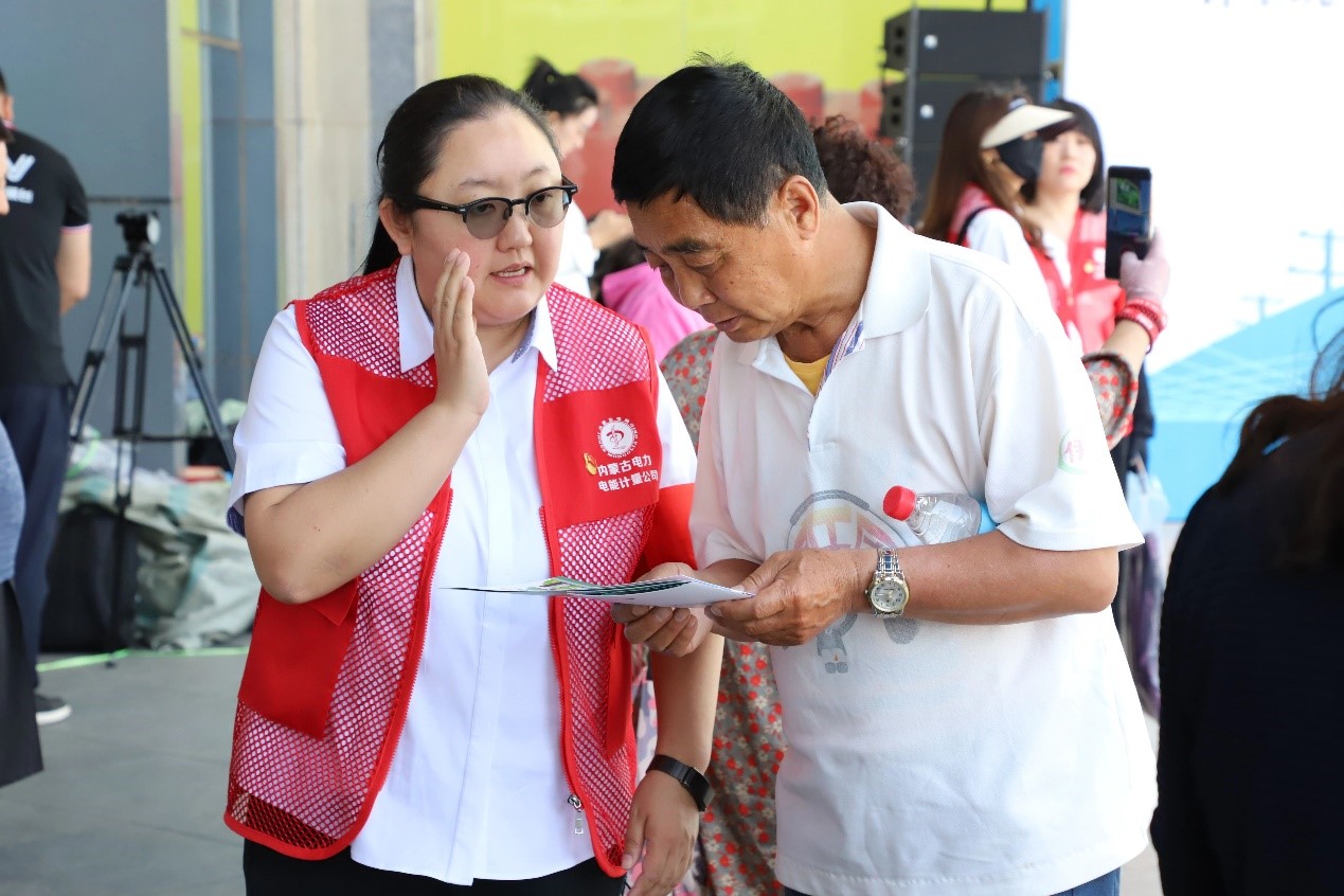 活動中通過設(shè)立展位、展板,面向用電客戶展開用電知識宣傳,向用電客戶科普了居民安全用電行為,講解了電能表、線上繳納電費、蒙電E家等居民客戶實際用電的問題。并且通過對比老舊電能表與新一代智能電能表,講述了電能計量裝置的發(fā)展,展現(xiàn)了新一代IR46電能表的優(yōu)勢及為民眾生活中提供的便捷,工作人員針對智能表與傳統(tǒng)電能表對用戶用電量差異進(jìn)行了現(xiàn)場答疑。