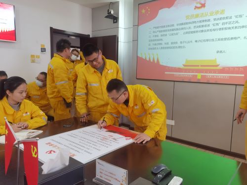 共作“廉”承諾。為進(jìn)一步增強(qiáng)黨員干部廉潔從業(yè)意識(shí),由紀(jì)檢委員吳紅濤領(lǐng)誓,參加人員進(jìn)行了廉潔承諾:“一、嚴(yán)格遵守國家法律法規(guī)、華潤集團(tuán)和華潤電力規(guī)章制度,堅(jiān)決拒收拒送“紅包”。二、帶頭嚴(yán)格教育管理親屬和身邊其他人員,堅(jiān)決抵制收送“紅包”的不正之風(fēng)……。”。隨后,參加人員在黨員廉潔承諾書上簽名,以此來表達(dá)在新時(shí)代趕考路上,對(duì)廉潔從業(yè)的決心和信心。