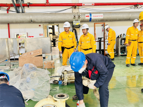 檢修現(xiàn)場(chǎng),龍勁強(qiáng)對(duì)透空機(jī)檢修項(xiàng)目的方案措施、安健環(huán)管控、人員組織情況等重點(diǎn)工作進(jìn)行了全面檢查,從項(xiàng)目現(xiàn)場(chǎng)安全文明施工、技術(shù)質(zhì)量管理等進(jìn)行了指導(dǎo),結(jié)合現(xiàn)場(chǎng)實(shí)際強(qiáng)調(diào):一是要加強(qiáng)黨建引領(lǐng),增強(qiáng)責(zé)任擔(dān)當(dāng),充分發(fā)揮黨支部的戰(zhàn)斗堡壘作用;二是加強(qiáng)檢修現(xiàn)場(chǎng)安健環(huán)管理,強(qiáng)化安全職責(zé)落實(shí);三是要提升質(zhì)量管理,高質(zhì)量完成透空機(jī)的檢修工作,全面提升透空機(jī)系統(tǒng)的經(jīng)濟(jì)運(yùn)行和節(jié)能降耗水平。
