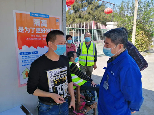 他組織編制了《項目部預防新型冠狀病毒肺炎防護措施》,成立了后勤管理組,以一系列實打?qū)嵉呐e措全面落實防疫措施。食堂每天消殺、通風,高東旺每天督導檢查,確保職工用餐安全;在項目部駐地門口,設(shè)置專人負責的出入登記、體溫測量;在宿舍設(shè)置專人每天全方位消毒;設(shè)立隔離間,對疫情返崗職工進行14天的隔離觀察;組織建立返崗隔離職工微信群,通過微信交流了解返崗職工需求,及時幫助職工解決所想所需。目前,潮電項目部隊伍保持穩(wěn)定。