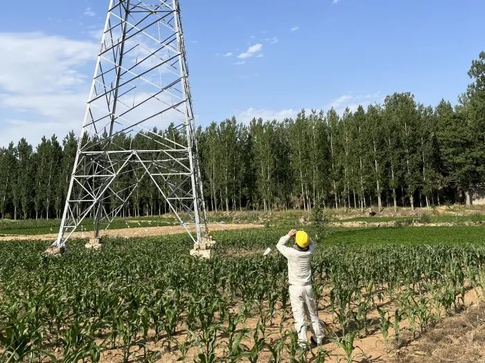 三峽能源山東分公司運檢人員通過望遠鏡遠程觀察方式對集電線路進行檢查