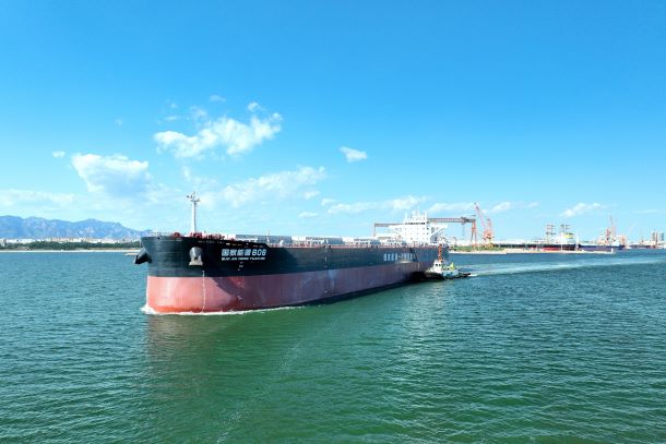 11月8日,國家能源集團(tuán)航運(yùn)公司第五艘6.5萬載重噸散貨船(B65K-5)“國家能源606”輪在大連造船山船重工舉行命名儀式。