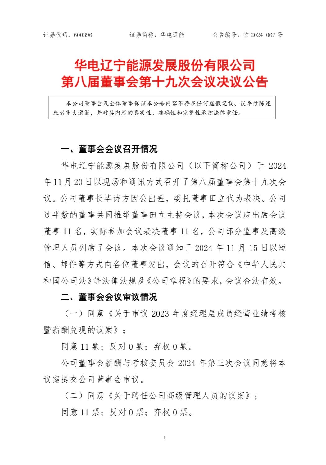 11月21日,華電遼能發(fā)布公告稱,公司于11月20日以現(xiàn)場和通訊方式召開了第八屆董事會第十九次會議,同意《關(guān)于聘任公司高級管理人員的議案》經(jīng)公司董事會提名委員會審查通過,公司董事會同意聘任李延春為公司副總經(jīng)理;同意《關(guān)于增補公司董事的議案》,并提交公司股東大會審議。經(jīng)公司董事會提名委員會審查通過,公司董事會同意增補劉志明為公司董事。