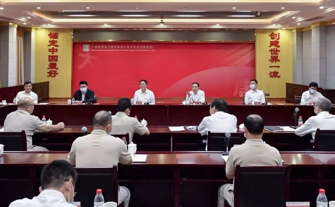 本網(wǎng)訊 5月23日至25日,按照深入開展學(xué)習(xí)貫徹習(xí)近平新時代中國特色社會主義思想主題教育和大興調(diào)查研究的部署要求,中央主題教育第四十四指導(dǎo)組組長焦開河、副組長萬軍一行與中國大唐集團(tuán)有限公司黨組書記、董事長鄒磊到廣西桂冠電力股份有限公司本部及所屬合山發(fā)電公司、大化水力發(fā)電總廠調(diào)研,聚焦貫徹落實(shí)習(xí)近平總書記關(guān)于“兩個一以貫之”的重要論述精神,在完善公司治理中加強(qiáng)黨的領(lǐng)導(dǎo),圍繞基層企業(yè)黨的組織、董事會建設(shè)及運(yùn)行、年輕干部培養(yǎng)選拔使用廣納賢言、聽取意見,圍繞煤電企業(yè)面臨的共性問題、個性問題剖析典型、分析原因,推進(jìn)完善中國特色國有企業(yè)公司治理,夯實(shí)高質(zhì)量發(fā)展體制機(jī)制保障。