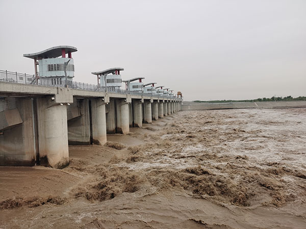 中國電力網(wǎng)訊 今年7月,黃河上游來水頗豐,日均流量超過2000m³/s。內(nèi)蒙古大唐國際海勃灣水利樞紐開發(fā)有限公司嚴(yán)格執(zhí)行水庫調(diào)令,聯(lián)合黃河海勃灣水利樞紐管理局集中開展清淤排沙工作。在排沙調(diào)度運(yùn)用現(xiàn)場(chǎng),該公司排沙洞和泄洪閘門全開,構(gòu)成了群龍并發(fā)、巨浪翻滾的壯闊場(chǎng)面。