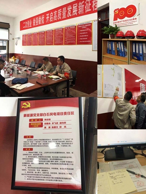 面對項目工期緊張、施工范圍廣、運輸難度大等各種困難,風電項目部團隊始終堅守在他們的“戰(zhàn)場上”,爭分奪秒向投產(chǎn)并網(wǎng)的目標前進。關鍵時刻,黨員干部沖鋒在前。風電項目部有職工13人,黨員8人,黨員占比65.7%。按照公司黨委統(tǒng)一部署,積極開展黨建進項目工作,成立了白石風電責任區(qū),黨員干部亮身份、亮職責、亮承諾,積極投入到“黨員爭先樹標桿、黨群協(xié)同創(chuàng)一流”項目攻關和“創(chuàng)崗建區(qū)”活動中來,對工作中的重點、難點問題,黨員干部帶頭攻關,形成月度成效表,取得了項目前期工作八大專題技術報告并批復;定期組織安全學習,安排專人負責巡視,及時發(fā)現(xiàn)項目工程安全隱患;解決了風電項目使用林地批復獲取滯后及項目現(xiàn)場施工等系列問題。