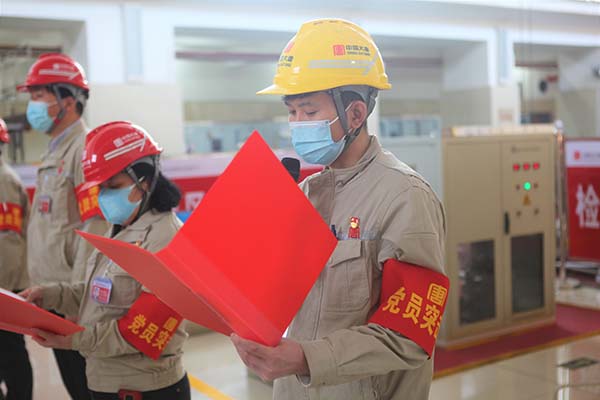 活動中,該公司黨委委員、紀委書記、工會主席李強同志宣讀了公司黨委印發(fā)《關于在1號機組A級檢修工作中充分發(fā)揮黨團組織作用的通知》的文件要求。公司黨委書記、執(zhí)行董事、總經(jīng)理薛福林同志為“1號機組A級檢修”黨員突擊隊、黨員服務隊、青年突擊隊分別授旗。生產(chǎn)一線黨員代表、青年代表分別圍繞1號機組A級檢修工作實際作了《黨員承諾》《青年承諾》。公司黨委委員、副總經(jīng)理錢明雄同志帶領廣大黨員在檢修現(xiàn)場面向鮮紅的黨旗重溫了入黨誓詞。