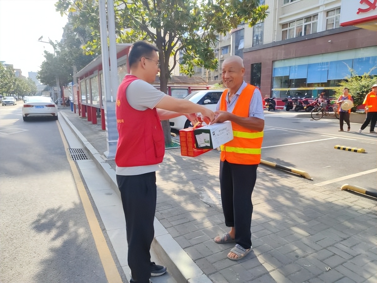 活動(dòng)中,志愿者們首先對(duì)他們不畏高溫天氣,仍然堅(jiān)守崗位工作、默默付出致以誠(chéng)摯的敬意和感謝。隨后,將牛奶、涼茶、礦泉水等慰問(wèn)物資送到一線環(huán)衛(wèi)工作人員手中,同時(shí)囑咐大家要提高自?;ケR庾R(shí),做好防暑降溫措施,確保勞逸結(jié)合、身體康健。此次活動(dòng),讓堅(jiān)守在烈日與高溫下的環(huán)衛(wèi)工人們感受到夏日的絲絲清涼。