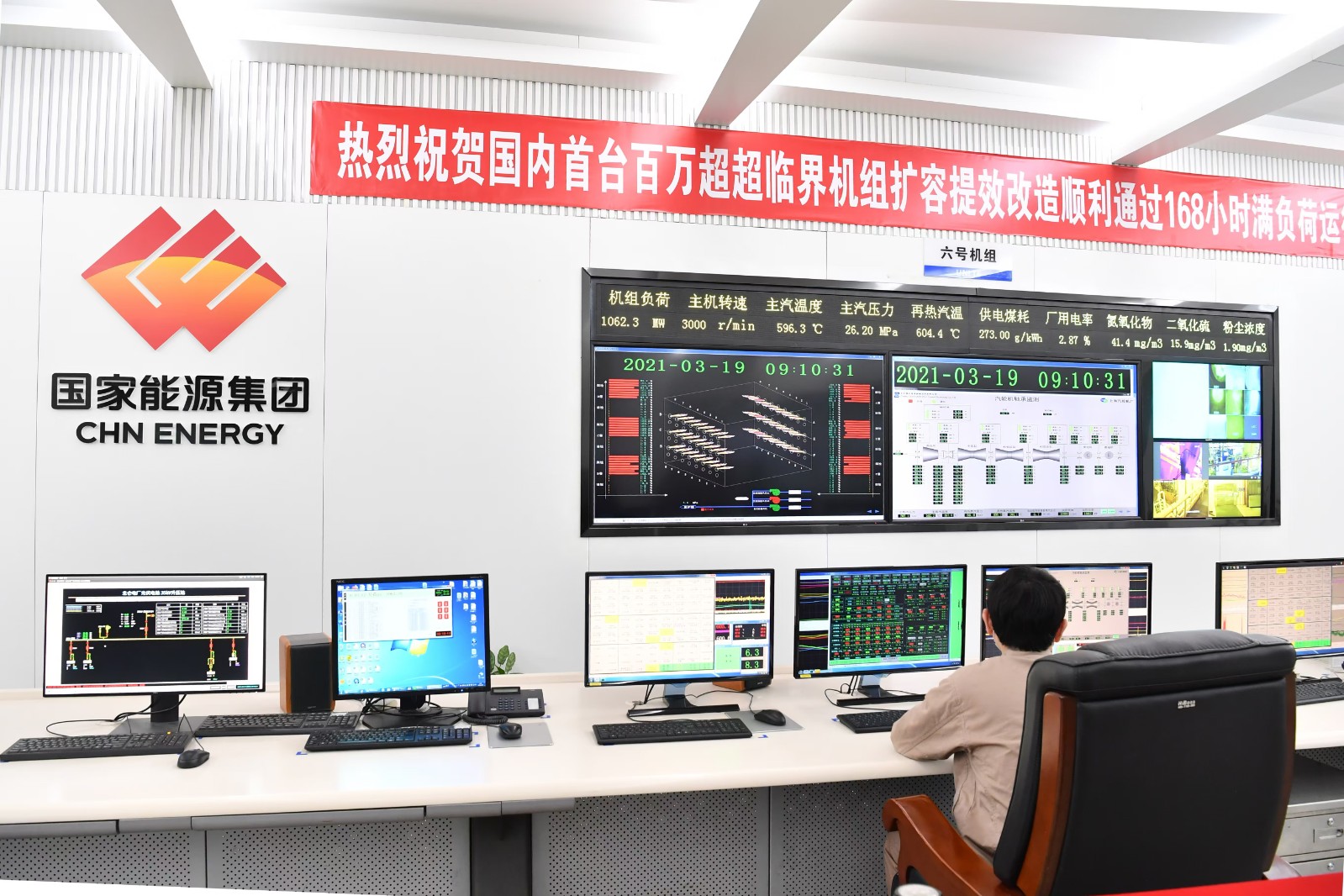 2020年9月,中國(guó)政府提出實(shí)現(xiàn)“雙碳”目標(biāo),小李的創(chuàng)新步伐更加堅(jiān)定。2020年10月,首臺(tái)6號(hào)1000兆瓦機(jī)組實(shí)施改造,而更換汽輪機(jī)高壓缸是重頭戲。“高壓缸重達(dá)120噸,體積接近一個(gè)集裝箱。”小李如是說(shuō)。要把一個(gè)龐然大物吊到17米高的汽機(jī)平臺(tái),精準(zhǔn)放置到軸承座上,各個(gè)環(huán)節(jié)必須準(zhǔn)確無(wú)誤。整整7個(gè)日夜,小李蹲守現(xiàn)場(chǎng),調(diào)整參數(shù)、處理缺陷。最終,機(jī)組順利并網(wǎng)。期間,該機(jī)組首次采用國(guó)能智深EDPF-NT+系統(tǒng),讓百萬(wàn)級(jí)煤電機(jī)組DEH控制系統(tǒng)用上“中國(guó)腦”。改造后,兩臺(tái)1000兆瓦機(jī)組供電煤耗下降3.1克/千瓦時(shí),增容100兆瓦,每年可增發(fā)電量5億千瓦時(shí)。