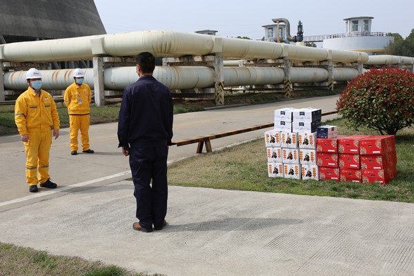 中國電力網(wǎng)訊 嚴峻的疫情形勢牽動人心,奮戰(zhàn)在防控一線的后勤服務(wù)者們各司其職、各盡其責(zé),為打贏這場沒有硝煙的戰(zhàn)爭不懈努力,堅守抗疫。3月11日上午,南京化學(xué)工業(yè)園熱電有限公司(以下簡稱:公司)領(lǐng)導(dǎo)及工會,為抗疫一線的后勤服務(wù)人員送去關(guān)心慰問,鼓勵他們再接再厲,擔(dān)當(dāng)作為,繼續(xù)扎實做好疫情防控各項工作,堅決打贏疫情防控阻擊戰(zhàn)。