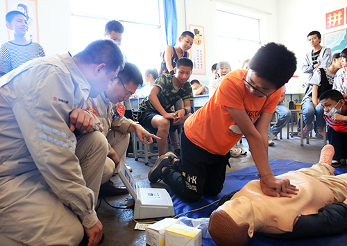 中國(guó)電力網(wǎng)訊 “青春心向黨、奮進(jìn)新征程”。2021年6月是全國(guó)第20個(gè)安全生產(chǎn)宣教月,按照國(guó)務(wù)院安委辦關(guān)于安全咨詢(xún)“進(jìn)企業(yè)、進(jìn)農(nóng)村、進(jìn)社區(qū)、進(jìn)學(xué)校、進(jìn)家庭”五進(jìn)活動(dòng)要求,為了更好地把安全理念傳遞給企業(yè)周邊學(xué)校學(xué)生,6月18日下午,大唐臨汾熱電公司組織青年志愿者走進(jìn)汾河學(xué)校“大唐班”開(kāi)展主題團(tuán)日活動(dòng),看望七年級(jí)、八年級(jí)“大唐班”學(xué)子,進(jìn)行安全宣傳咨詢(xún)和心肺復(fù)蘇急救指導(dǎo),提升孩子們的自我防護(hù)意識(shí)及自救能力。