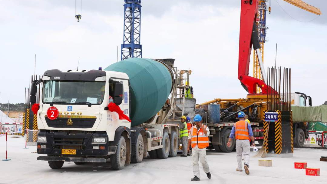 8月15日,1號機(jī)組現(xiàn)場機(jī)器轟鳴、吊臂起降、一片繁忙。15時整,隨著一聲令下,混凝土澆筑正式啟動,1號常規(guī)島順利實(shí)現(xiàn)第一罐混凝土澆筑(FCD)目標(biāo)。