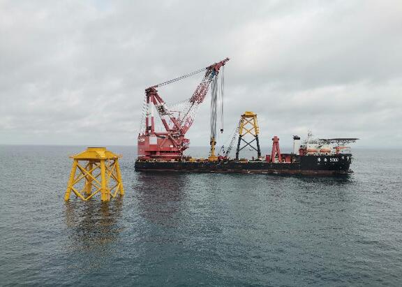 900噸海上風(fēng)機(jī)基礎(chǔ)導(dǎo)管架安裝完成