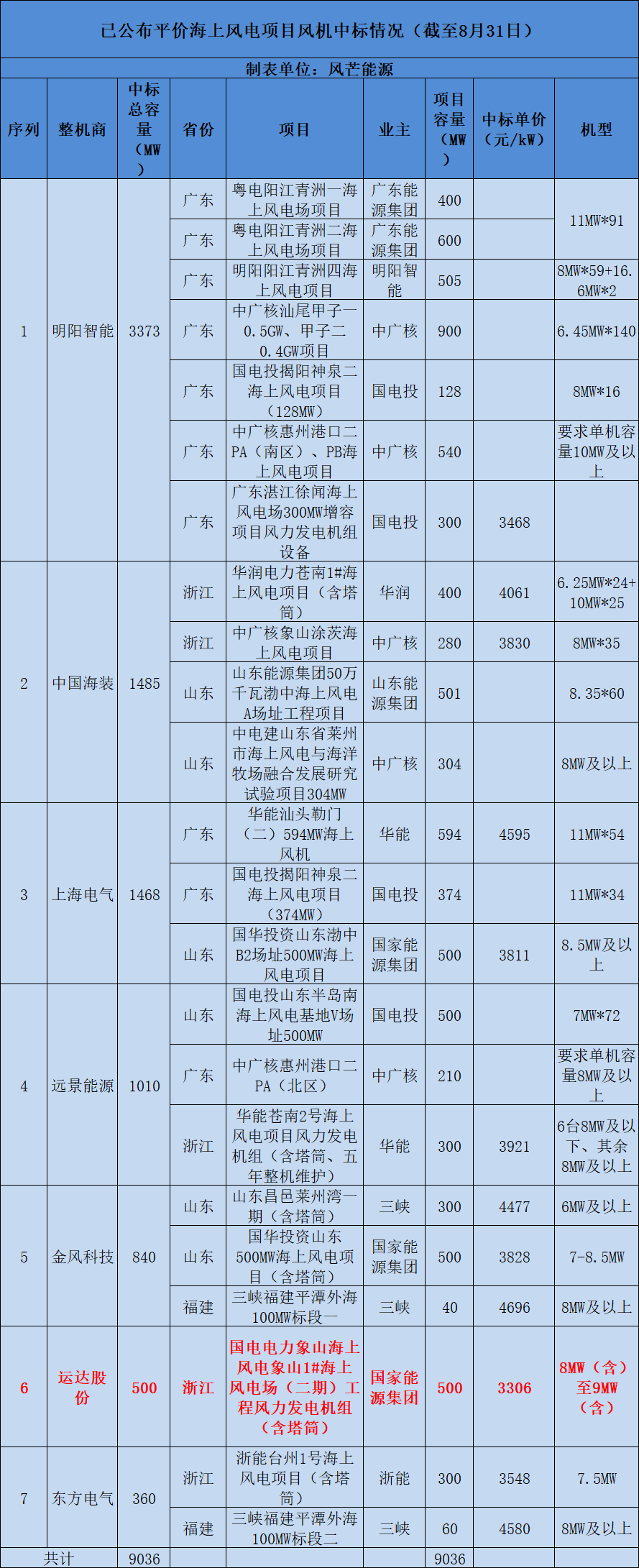 根據(jù)公開信息不完全統(tǒng)計(jì),該項(xiàng)目為運(yùn)達(dá)股份在國內(nèi)中標(biāo)的首個海上風(fēng)電項(xiàng)目。