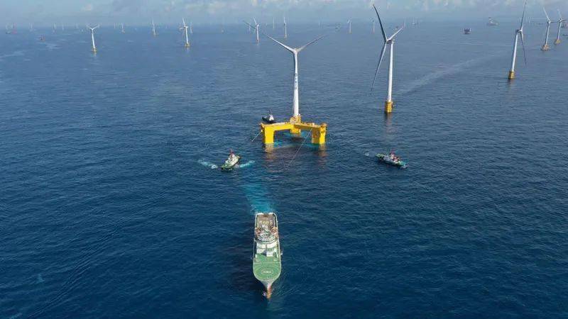 這一刻,人與海的交響,宣告我國漂浮式海上風電史有了濃墨重彩的第一筆,擁有完全自主知識產(chǎn)權(quán)的中國漂浮式風電機組及基礎平臺——“三峽引領號”邁出了深遠海風能資源獲取的探索步伐。
