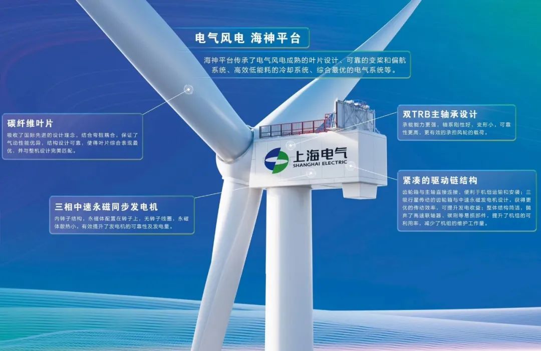 海神平臺傳承了電氣風(fēng)電成熟的葉片設(shè)計、可靠的變槳和偏航系統(tǒng)、高效低能耗的冷卻系統(tǒng)、綜合最優(yōu)的電氣系統(tǒng)等。在碳纖維葉片、雙TRB主軸承設(shè)計、三相中速永磁同步發(fā)電機、緊湊的驅(qū)動鏈結(jié)構(gòu)等方面創(chuàng)新設(shè)計,并針對不同海域的風(fēng)資源稟賦和海洋地質(zhì)條件,因地制宜,提供適合當(dāng)?shù)氐淖罴呀鉀Q方案。